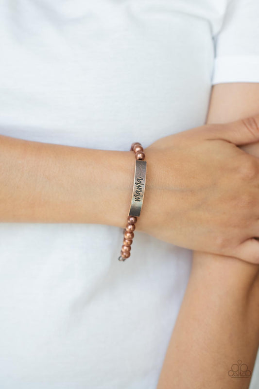 Paparazzi Accessories-Mom Squad Copper Engraved "Mama" Bead Bracelet