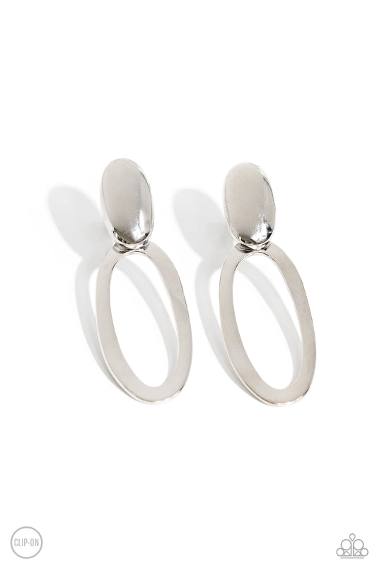 Paparazzi Accessories-Pull OVAL! Silver Oval Clip-On Earrings