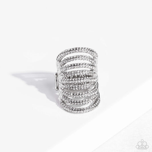 Paparazzi Accessories-Rippling Rarity White Rhinestone EMP Stacked Ring