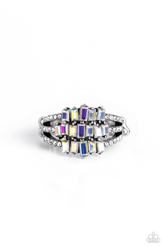 Paparazzi Accessories-Stacking Up White Dainty Iridescent Ring