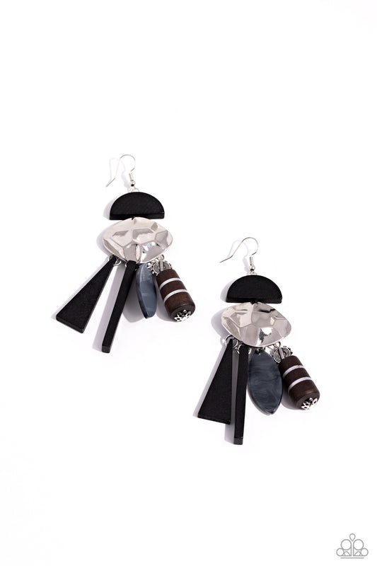 Paparazzi Accessories-Textured Talisman Black Abstract Exotic Earrings