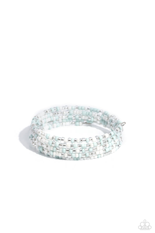 Paparazzi Accessories-Coiled Candy White Pearly Blue Seed Bead Bracelet