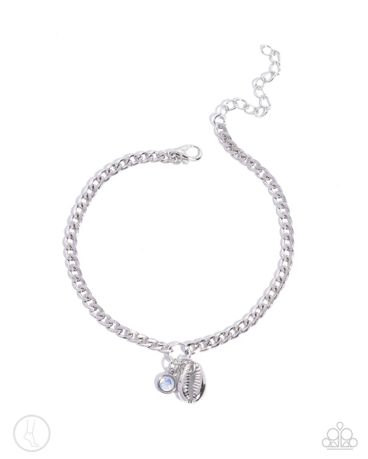 Paparazzi Accessories-Conch Comeback White Charming Silver Anklet