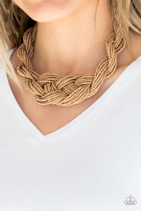 Paparazzi Accessories-A Standing Ovation Brown Seed Necklace Set