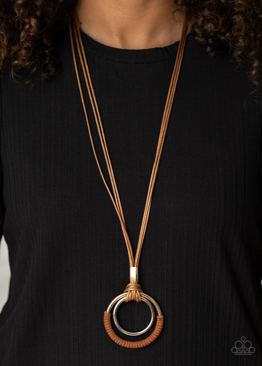 Paparazzi Accessories-Elliptical Essence Brown Necklace Set