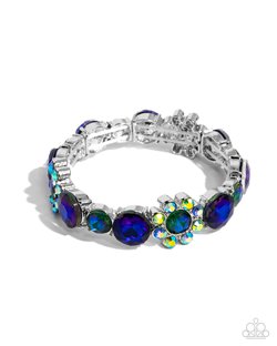Paparazzi Accessories-Floral Fashion Show Blue Twinkly Flower Necklace Set