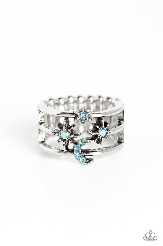 Paparazzi Accessories-Fly Me To The Stars Blue Iridescent Crescent Ring