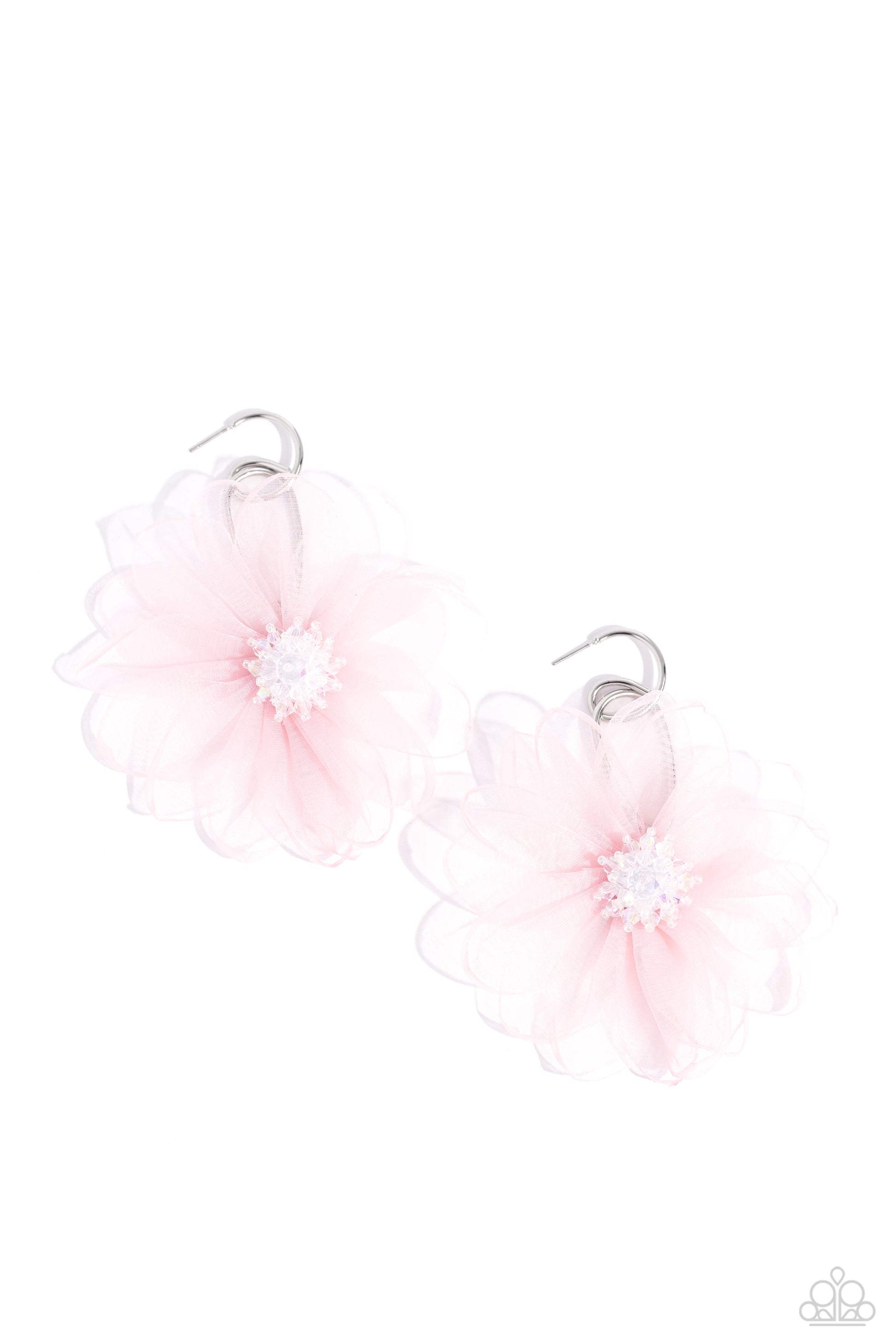 Paparazzi Accessories-Cosmopolitan Chiffon Pink Petal Hoop Earrings