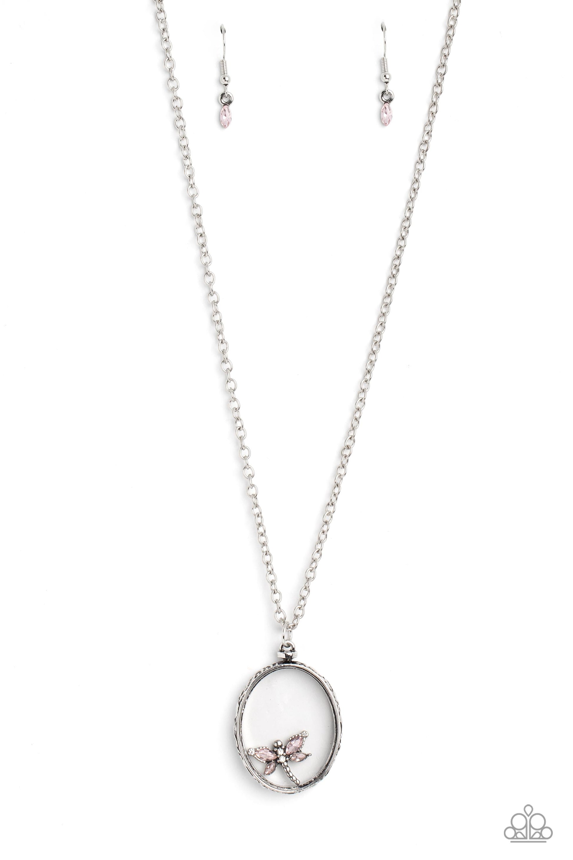 Paparazzi Accessories-Dynamic Dragonfly Pink Oval Pendant Necklace Set