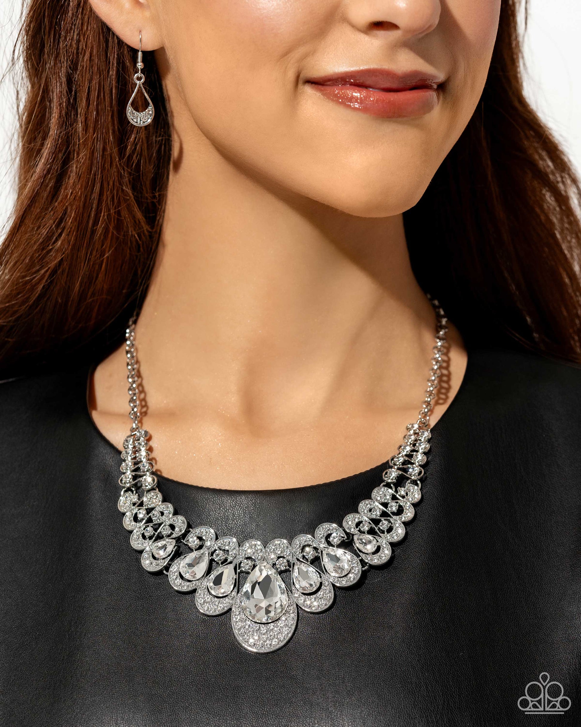 Paparazzi Accessories-Infinite Idol White Solitaire Teardrop Necklace Set