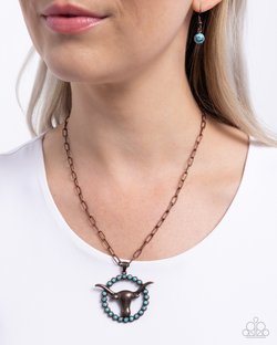 Paparazzi Accessories-Longhorn Lasso Turquoise Stone Skull Necklace Set