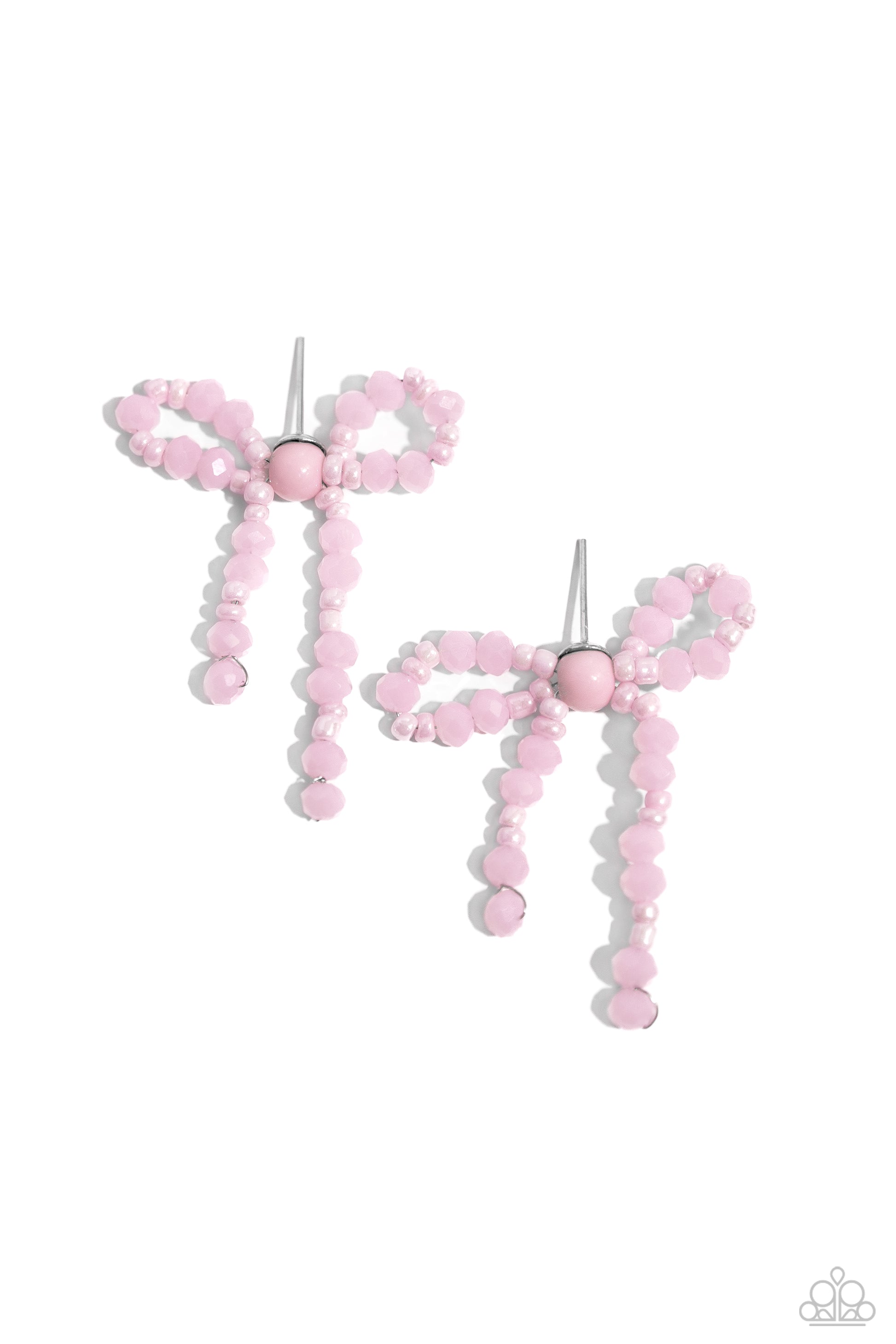 Paparazzi Accessories-The BOW Must Go Pink Seed Bead Loop Earrings